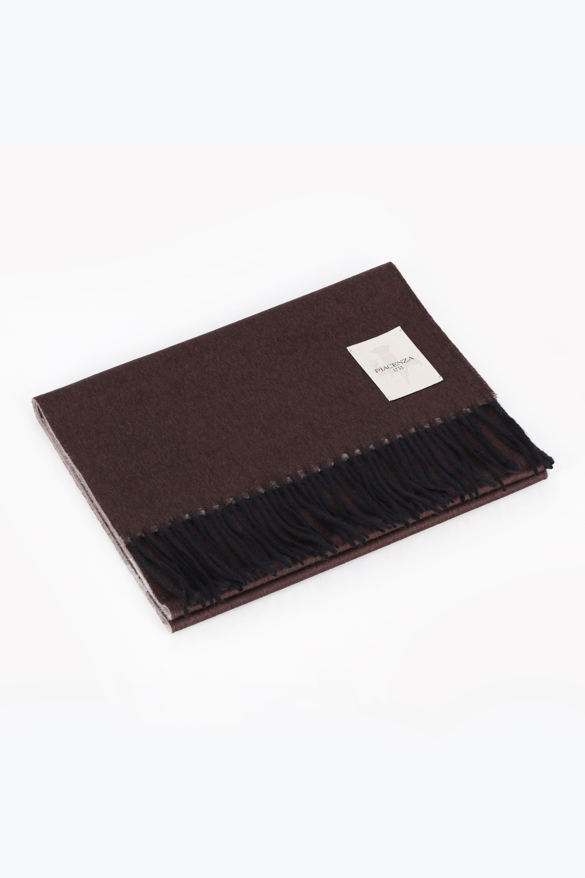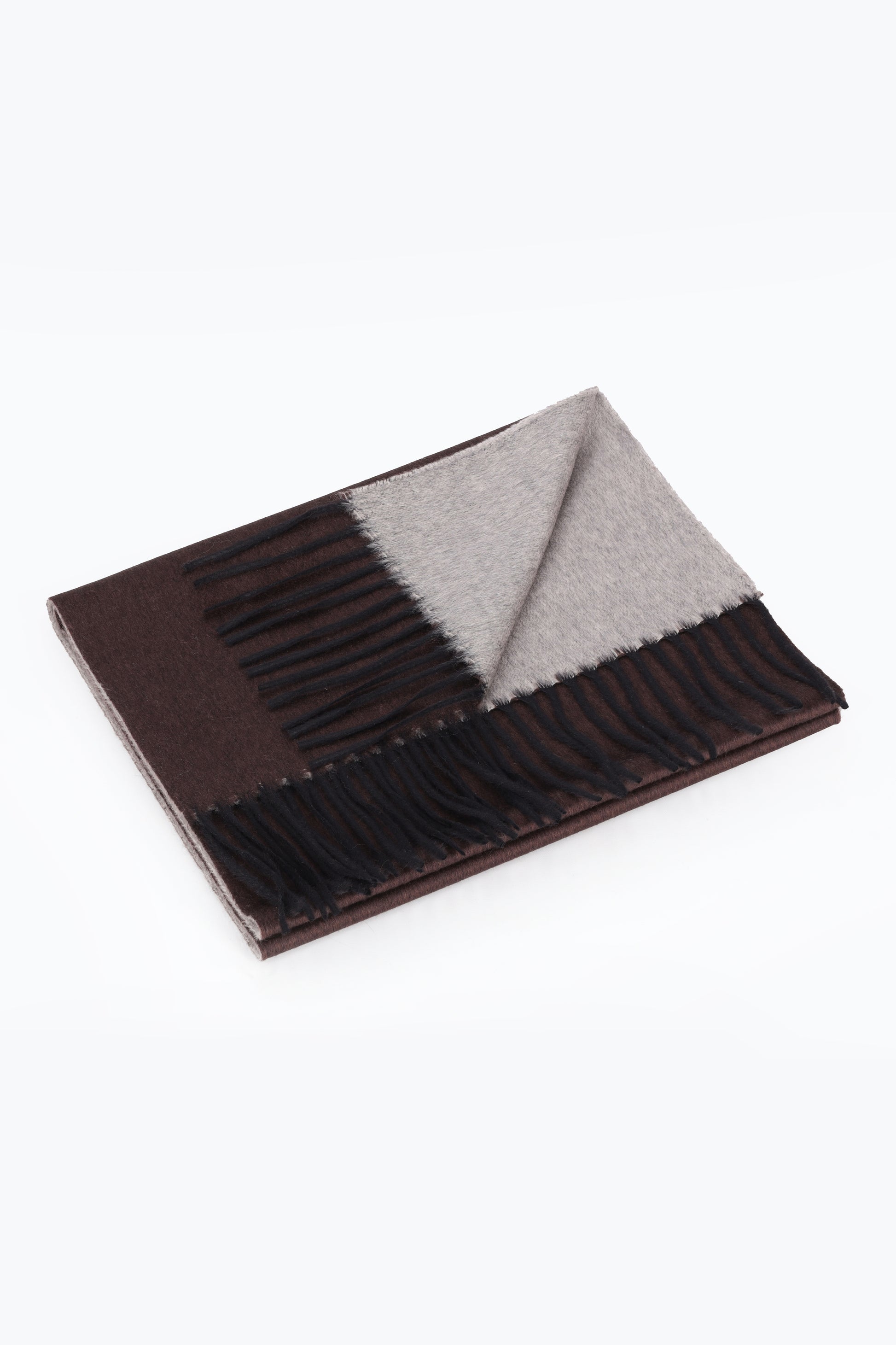 Description: Silk and Cashmere scarf in chocolate and light grey