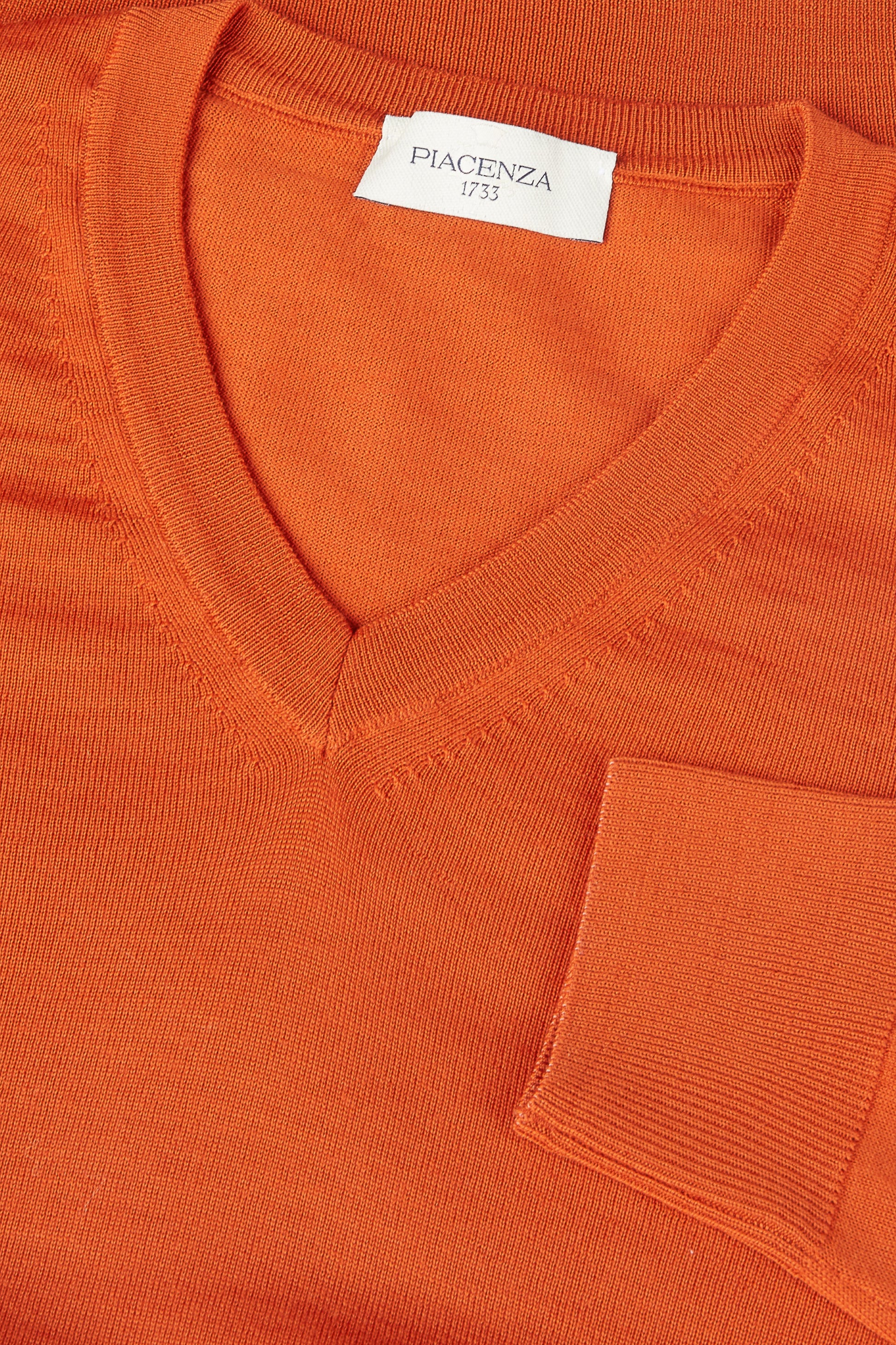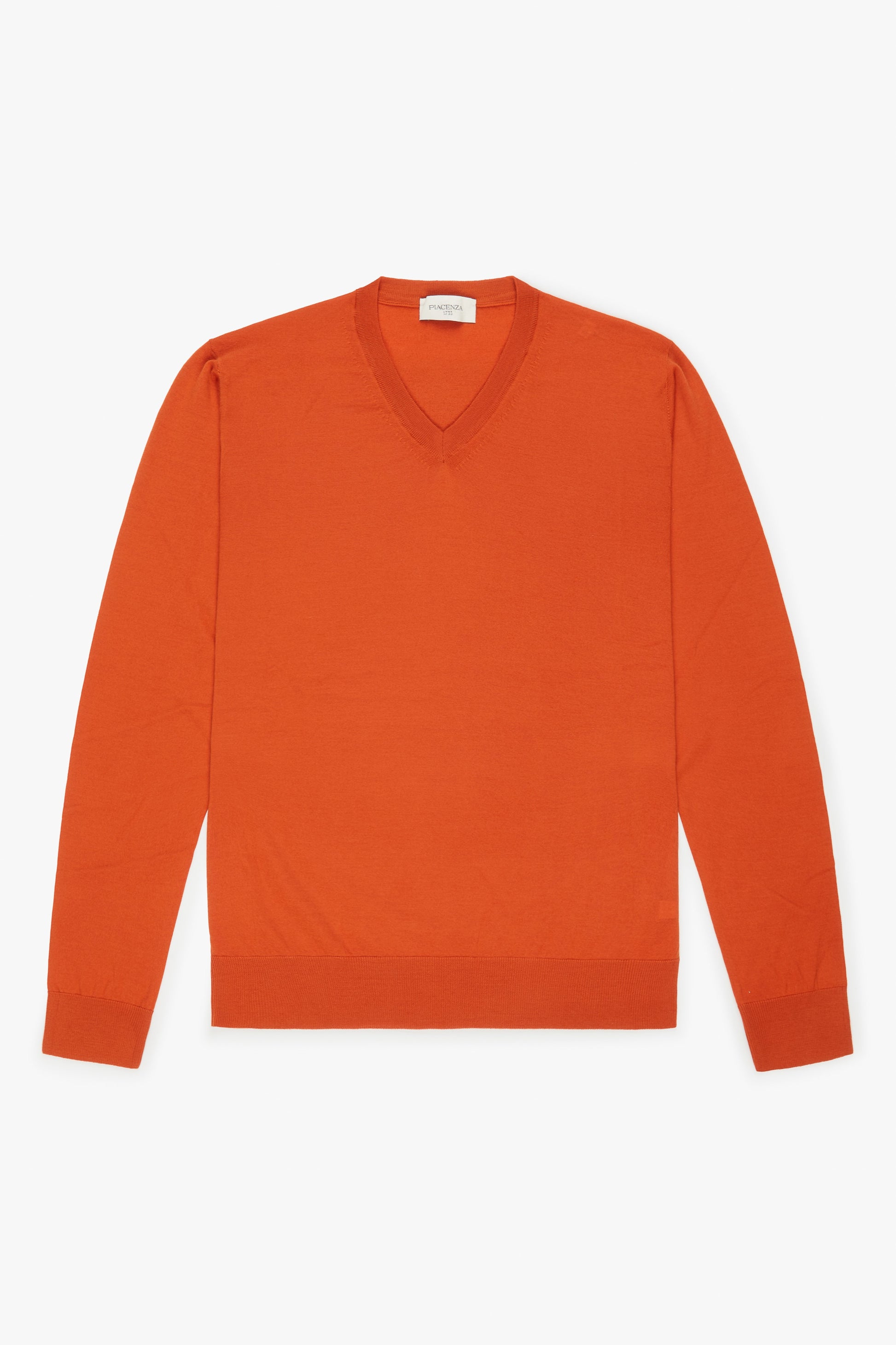 The V-neck in orange merino wool is an indispensable garment for those who love luxury and comfort. Its high-quality fabric is an ideal choice for those who want a comfortable and unique dressing experience. With its attractive design and its orange-green color , this garment is perfect for any occasion.
