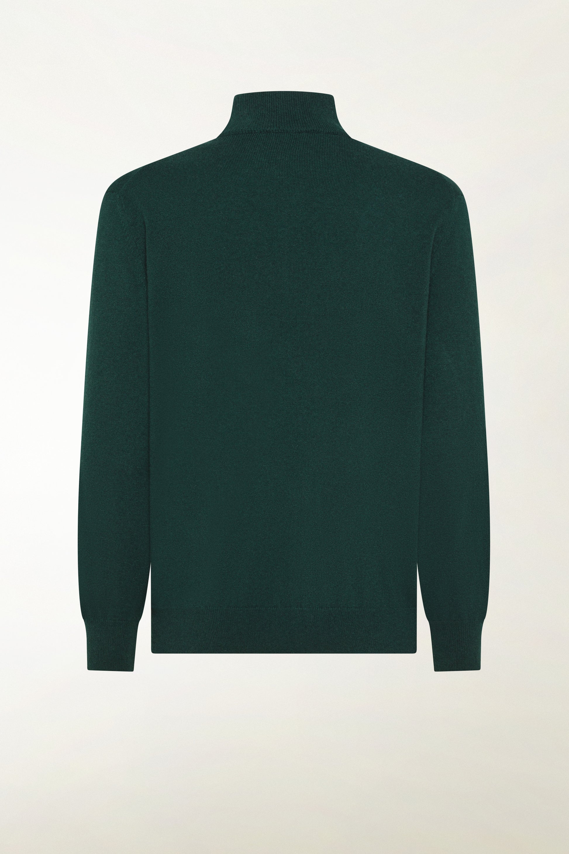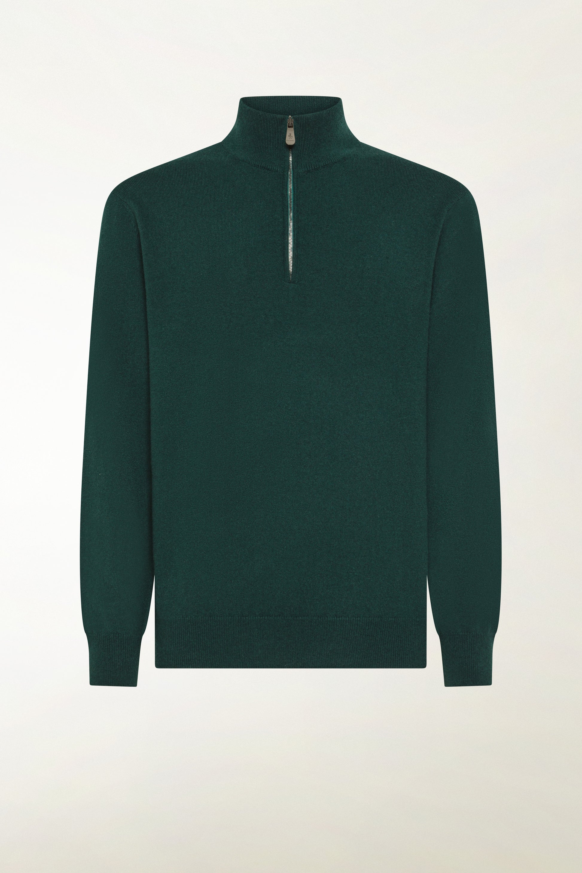 Lupetto zip in puro cashmere verde con vestibilità regolare, pensato per offrire comfort e calore nei periodi più freddi. Morbido e versatile, si adatta facilmente a contesti formali e informali.