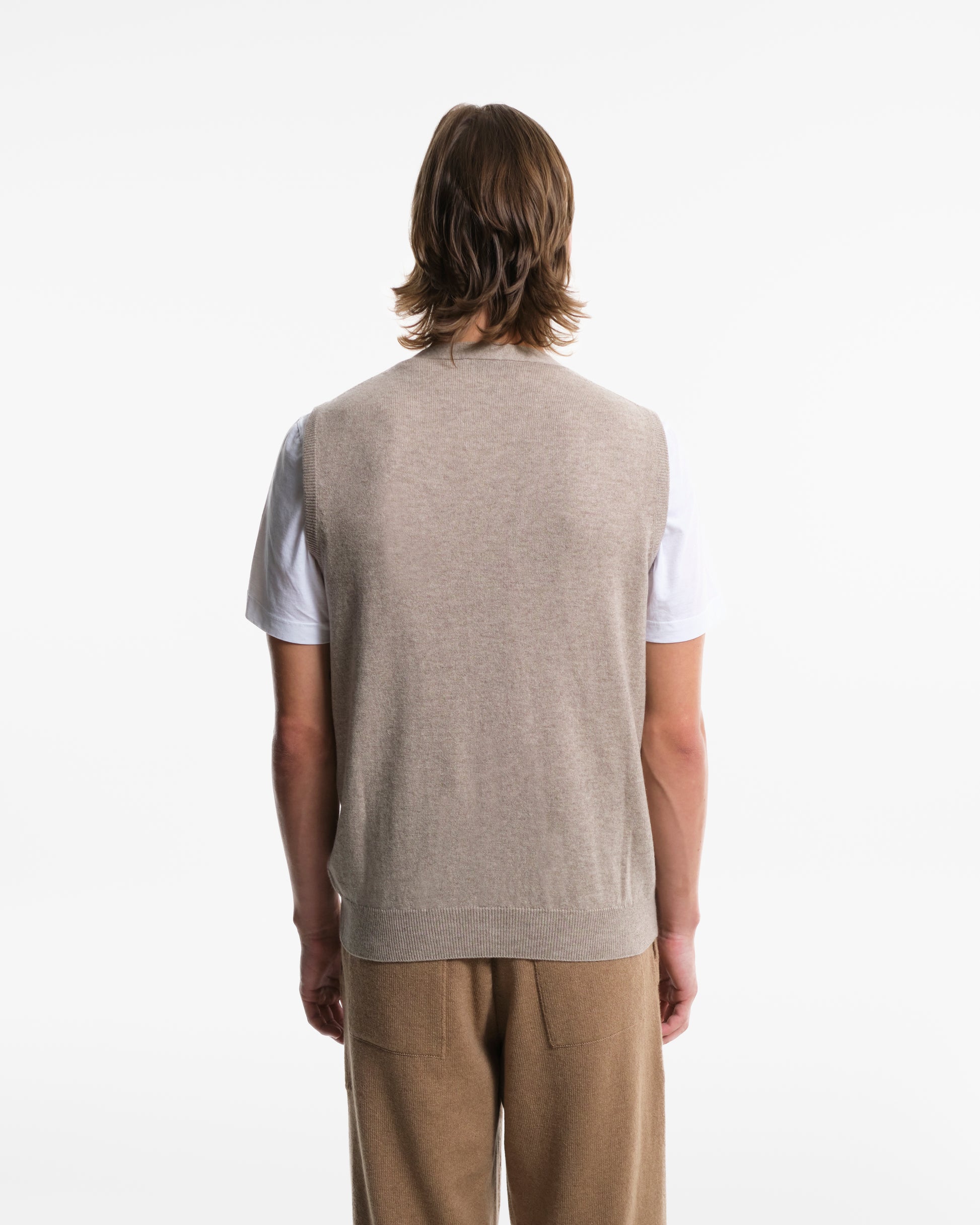 Gilet con bottoni in Cashmere, un capo ideale da abbinare ad una camicia per un look classico, perfetto anche come sottogiacca. Distinguibile dalla vestibilità regolare e dalla lavorazione rasata con microcostine sullo scollo, sui polsini e sul fondo.