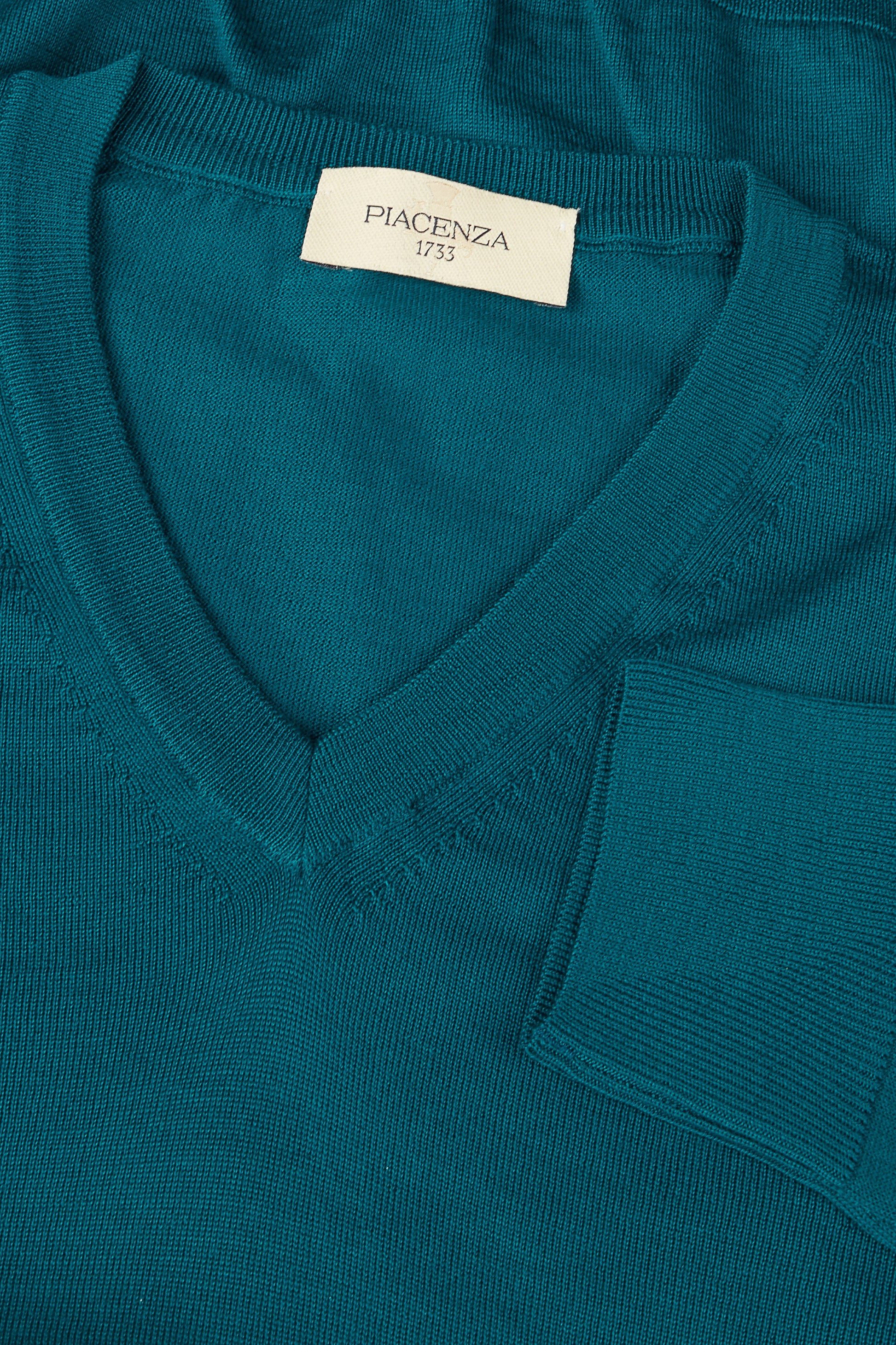 Scollo V lana merino super fine petrolio